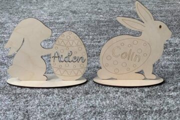 Grab your paints or your markers and decorate one of these cute bunny cutouts. They can say Happy Easter, or be personalized with a name. Both fonts shown are available, and can be engraved or Read more